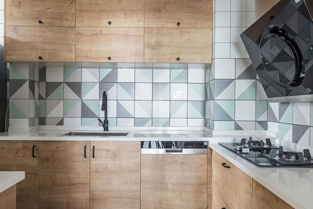 橱柜采用釉面设计,并利用激光进行封边,保持了极度细腻的质感。