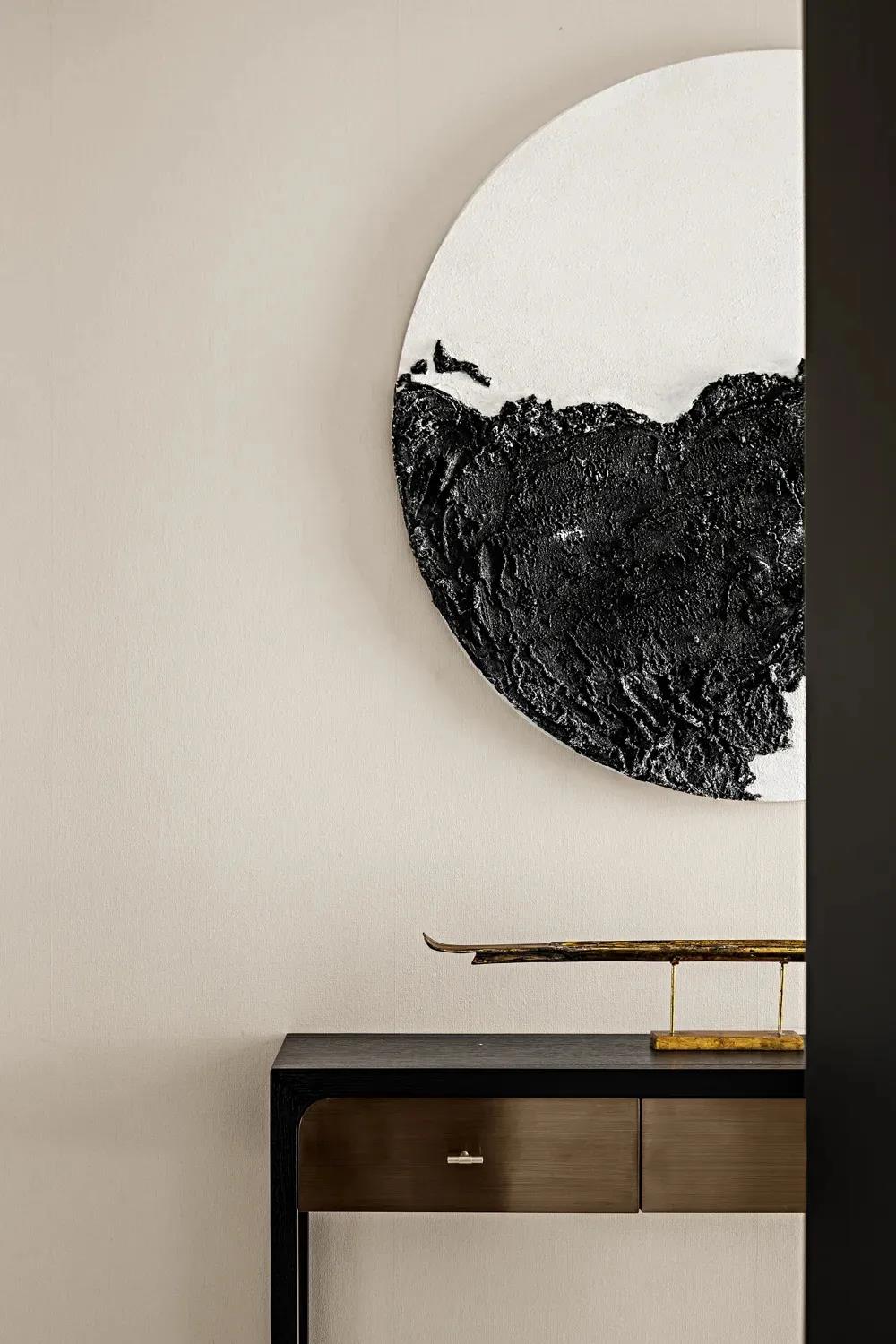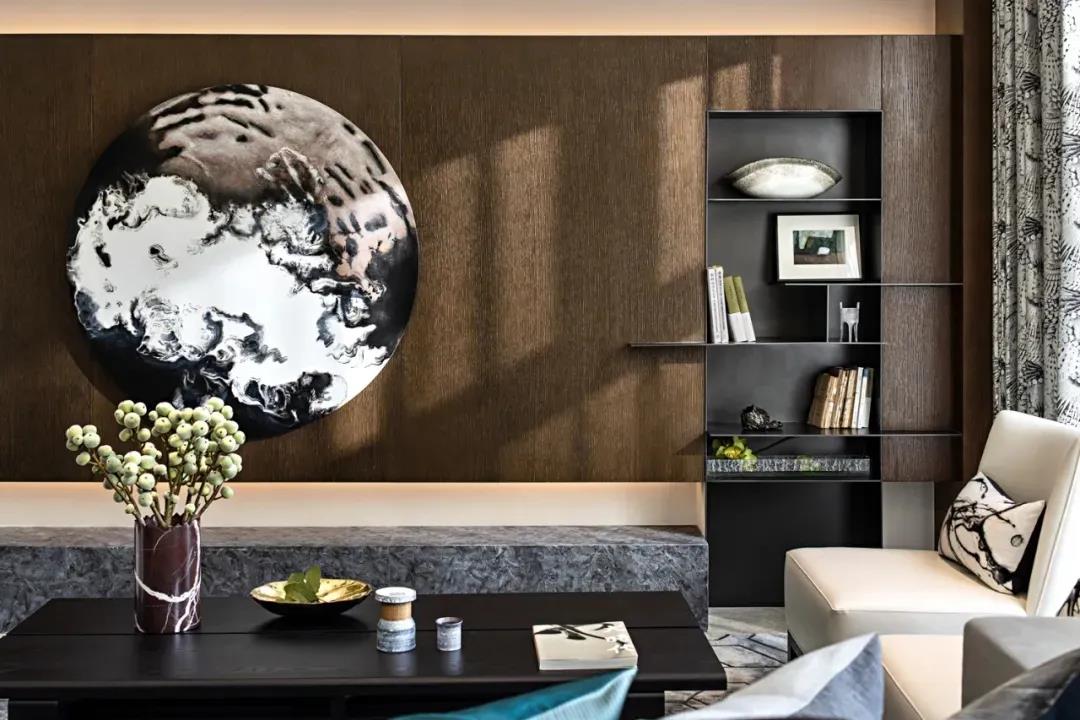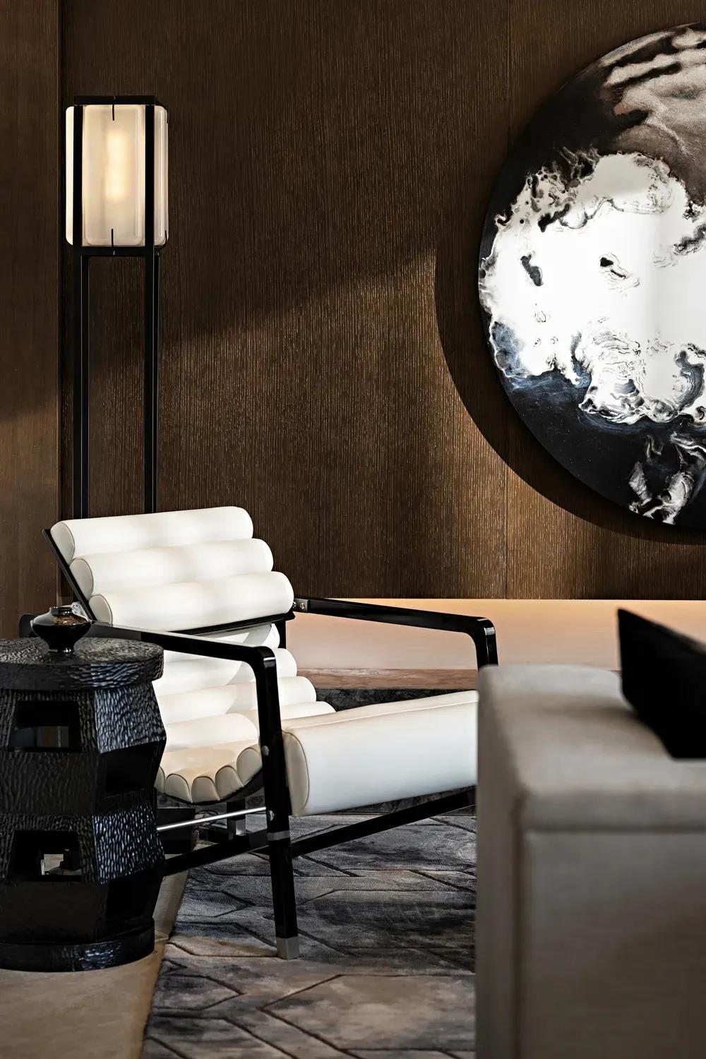 “画类万物之情。”苍劲笔锋象征着文人不屈不挠的傲骨,是岁月赠予的稳重与柔和,幽润昏暗的灯光,内敛秀美的家具形态,含蓄温和的材质对比将这一切不自觉中带入一种优雅当中。
