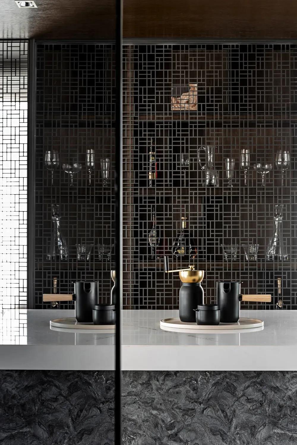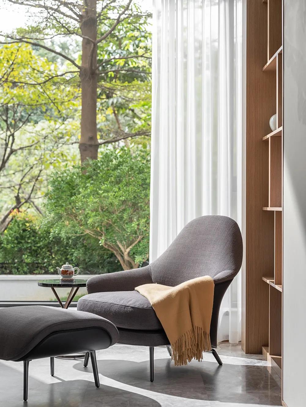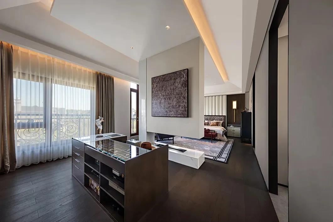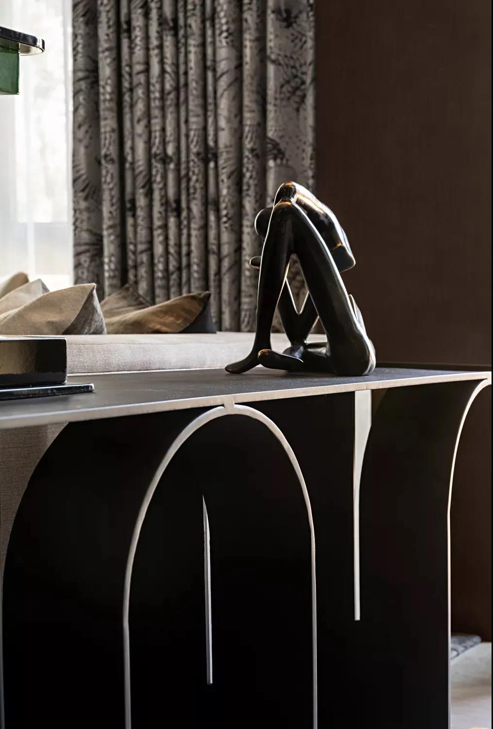 “画类万物之情。”苍劲笔锋象征着文人不屈不挠的傲骨,是岁月赠予的稳重与柔和,幽润昏暗的灯光,内敛秀美的家具形态,含蓄温和的材质对比将这一切不自觉中带入一种优雅当中。
