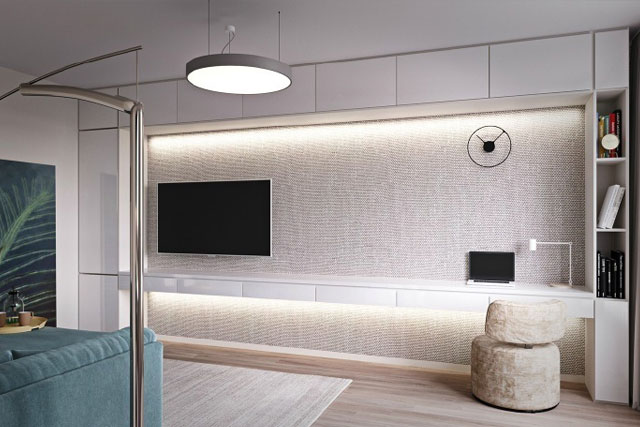 定制柜体选用同色系美国白蜡木,交相辉映,绝对可以称得上每一位美式风格爱好者心中的白月光。
